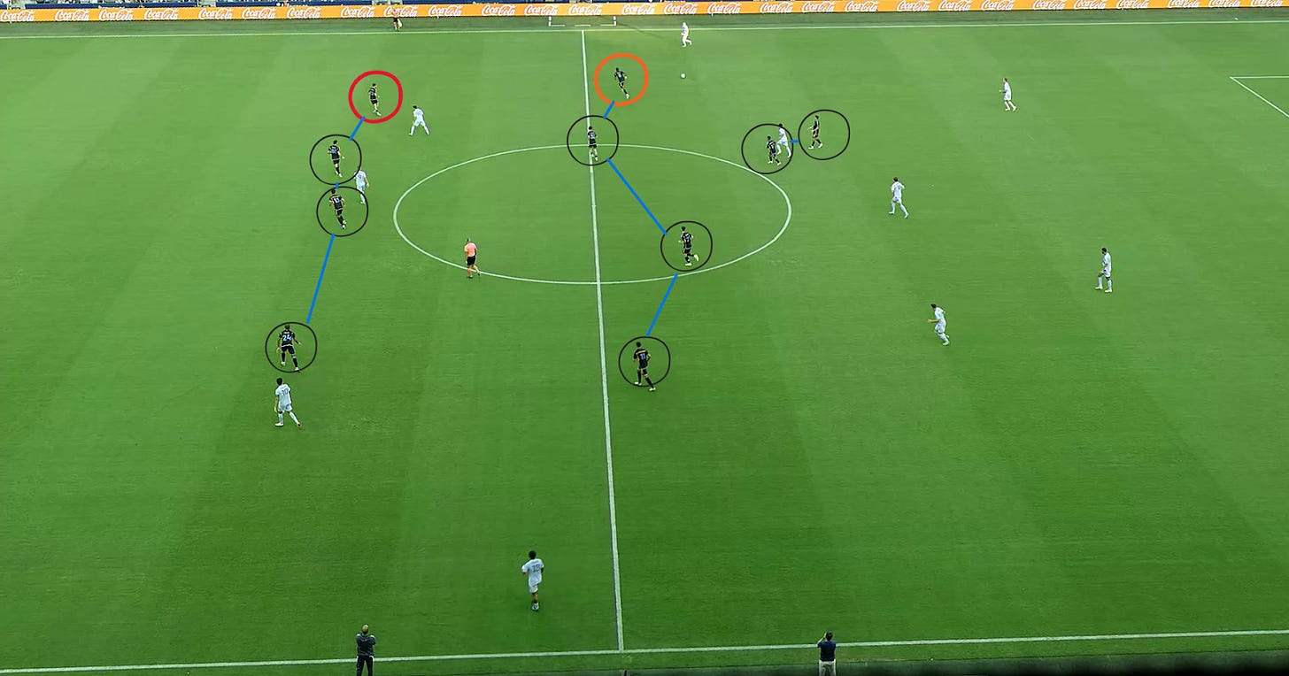 With no other left-footed centerback on the roster following Risa’s absence, Jansen had to get creative again in reshaping the left side. Fortunately, Risa’s departure coincided with O’Toole’s return from injury. The Princeton graduate is a smart player, providing Jansen with a left-footed defender whom he can deploy flexibly. In recent games, O’Toole has not only played as a traditional fullback but has also taken on roles as an inverted fullback and a more forward, attacking wingback.