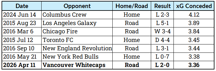 And if you recalculated that metric after the loss to Vancouver, they would be right. Martins’ xGA on/off statistic jumped all the way up to 20.7% – remember that thing we said about sample size?– after manager Jesper Sørensen’s attack curbstomped Pascal Jansen’s defense to the tune of 3.36 xG in his absence. The designated player (DP) center back missed the game with a leg injury, and the ensuing defensive performance will go down in the annals of NYCFC history as the 7th-worst all-time by conceded xG.