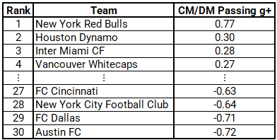 Aidan O’Neill and Keaton Parks rarely supplemented buildups through the midfield as New York City struggled to build up through the 4-4-2 pressing shape, even with Messi merely existing as a traffic cone. Through five games, NYCFC central and defensive midfielders rank 28th among 30 MLS teams in passing goals added (g+), according to American Soccer Analysis, highlighting the fact that only two MLS teams have gotten less from the middle of the field.