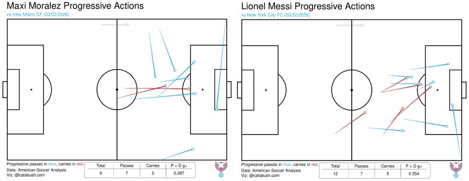 The defending MLS Cup champions provided the best bellwether for NYC early in 2026. This match confirmed the Pigeons are a second-tier contender in the Eastern Conference, but it showed that their Argentine short kings can keep them in games against anyone in MLS. While they may not be Messi, Fernández Mercau and Moralez have accounted for 10 of the team’s 19 goal contributions and 42.3% of their expected goals and assists. They are more than capable of moments of magic to compensate as the buildup finds its footing, and of dragging their team back into battles like this. It just wasn’t enough against Messi on this day. ❧