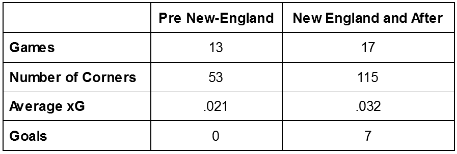 In a very atypical manner, NYCFC had secured the game despite New England’s sizable advantage Expected Goals (xG) in large part due to some great set pieces off corner kicks. After the game, head coach Ronny Deila gave all the credit to assistant coach Rob Vartughian - the man responsible for all set pieces.
