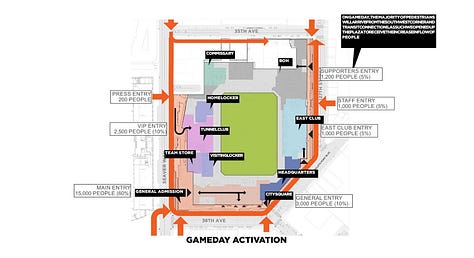 Just south of the supporters' section entrance, along the eastern edge of the stadium, will be the “Founders Wall”. Founding member ticket holders have long been promised their “brick” at the eventual stadium. With this dedicated section along the eastern side of the stadium, the home for those bricks appears to be set in stone.