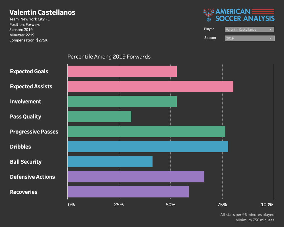 His physical maturation has gone hand in hand with a tireless workrate on both sides of the ball. Castellanos is a vital part of NYCFC's high press, hounding backlines deep into the final minutes for a defense that allowed opponents to complete a league-low 78 passes per game from their own third.
